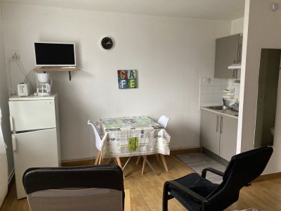 Nous proposons à la location un studio confortable situé au 1er étage d'une petite résidence sans ascenseur. Ce studio (1 pièce) comprend une grande pièce de vie avec un espace repas et un espace nuit équipé d'un lit et d'une ...