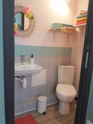 - 1 salle d'eau avec douche, lavabo et wc,