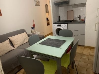 Appartement de 28 m² pour 4 personnes comportant 2 pièces avec cuisine, salle d’eau, wc dans salle d’eau, salon et une chambre (4 couchages : 1 lit double, 1 canapé lit).