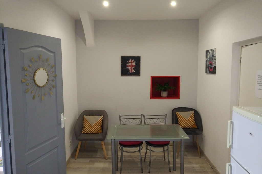 - un espace salon avec table dinatoire, fauteuils, télévision et wifi,