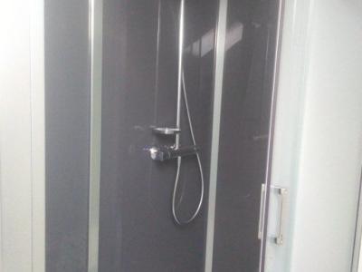 - une salle d'eau avec douche, vasque, sèche-serviette et wc,