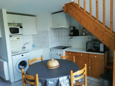 Appartement de 40 m² pour 6 personnes comportant 1 pièce avec cuisine, salle de bain, wc indépendants, salon et une chambre (6 couchages : 1 lit double, 2 lits superposés, 1 canapé lit, 1 lit bébé).