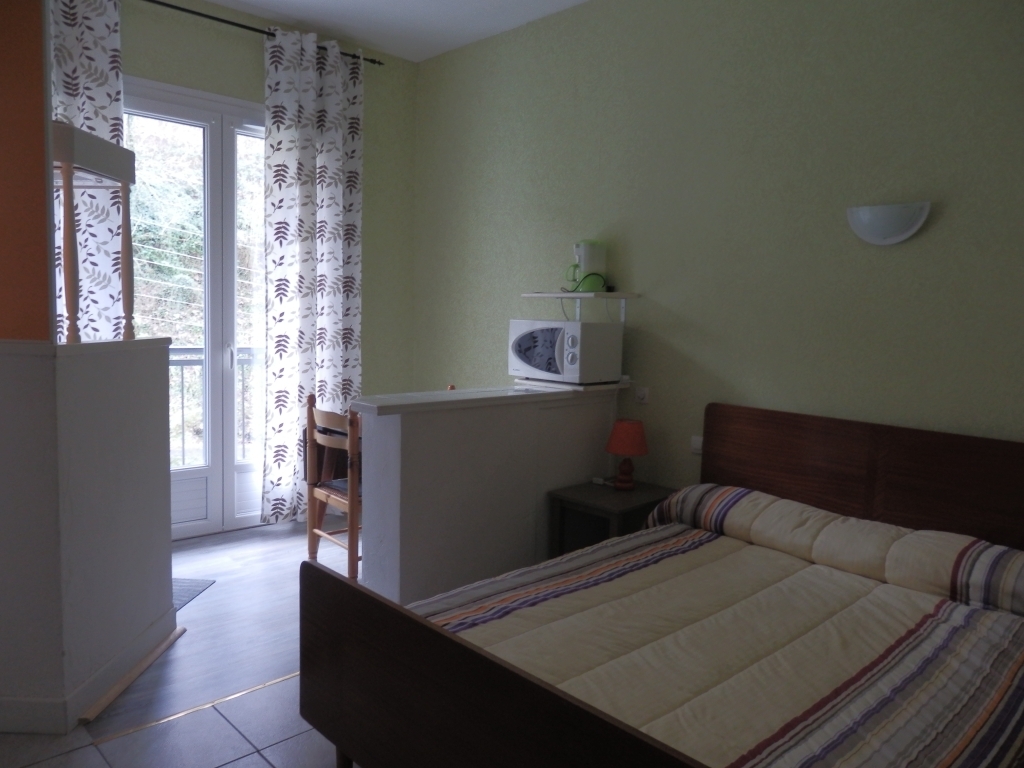 Studio de 20 m² pour 2 personnes comportant 1 pièce avec cuisine, salle d’eau, wc dans salle d’eau (2 couchages : 1 lit double).