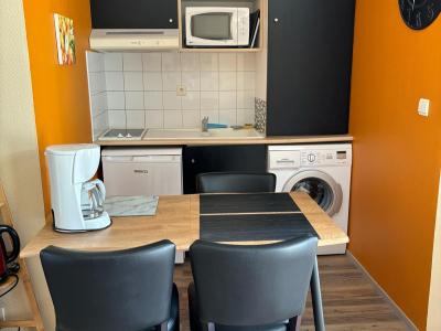 D'une superficie de 28 m², le logement se compose d'un coin cuisine équipé avec plaques de cuisson, micro-ondes, réfrigérateur top, lave-linge, cafetière et bouilloire. Le salon comprend une table pour les repas, un fauteuil et une télévision. Le coin nuit est aménagé avec un lit double en 140 cm. Le balcon permet de profiter de l'extérieur avec une table et des chaises.